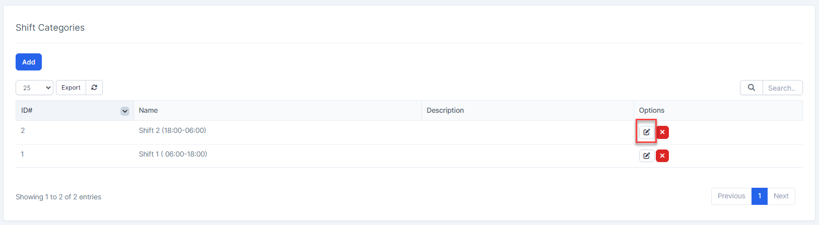 - Step 2. Select the shift category need to be edited and click Edit button