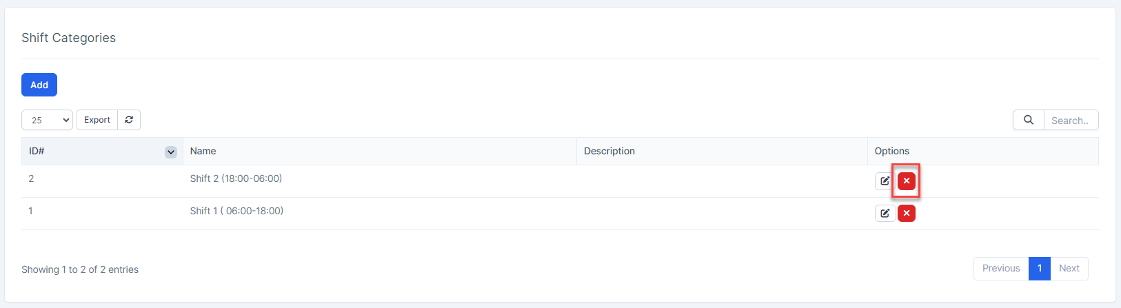 If a shift catetory is no longer operational, you can delete it. To delete a shift category: