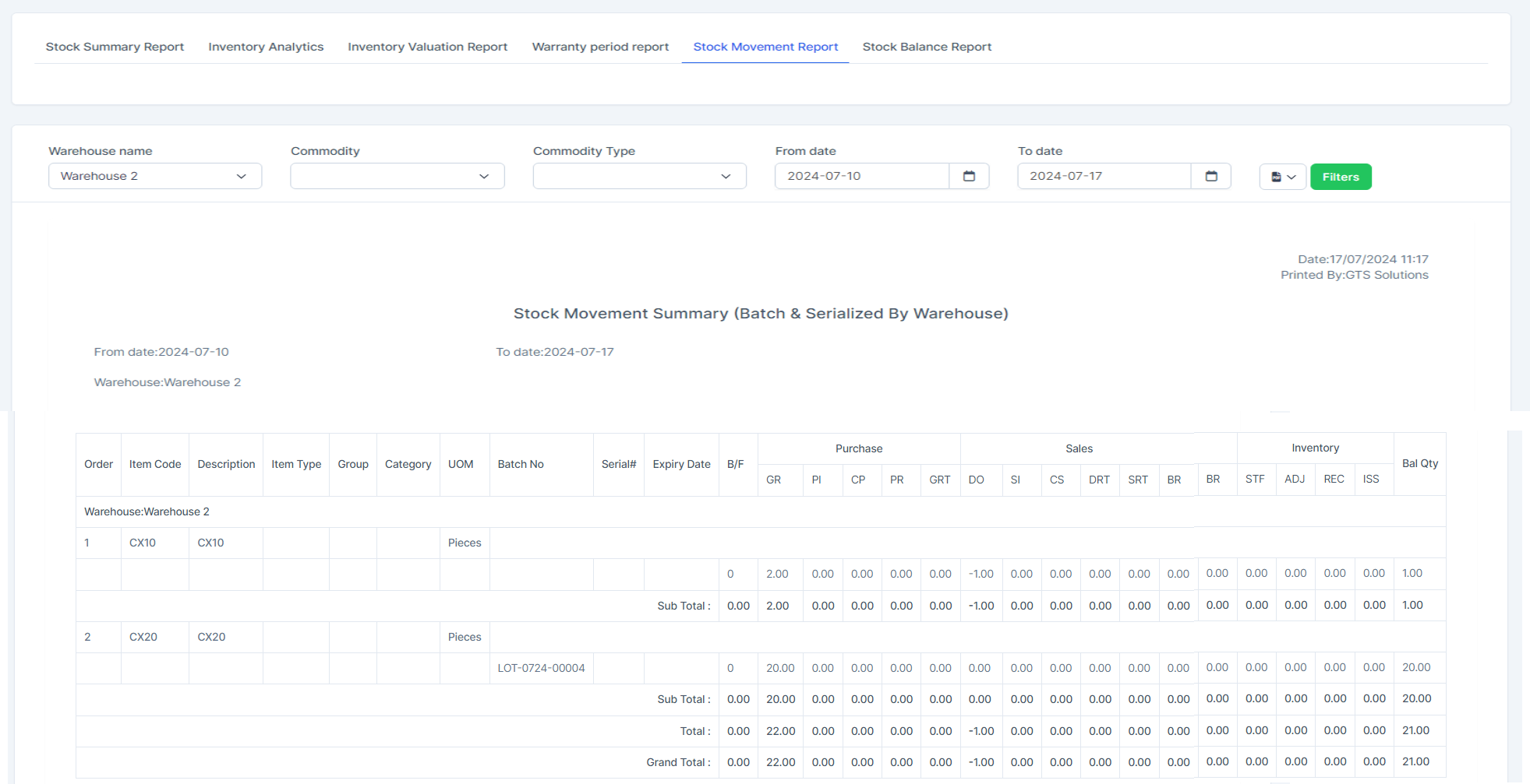 - STF: Stock Transfer - get the quantity of the warehouse received from the Internal Delivery Voucher ( take positive value )