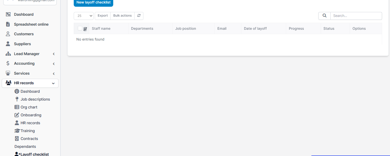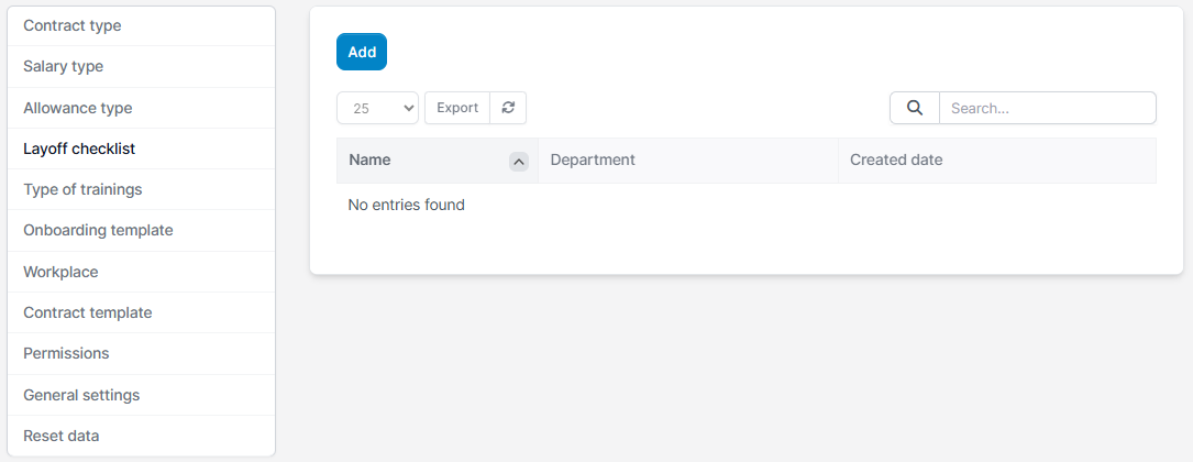 - Step 1: Select HR Records module -> Settings -> Layoff Checklist -> Add