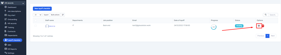- Step 7: Update the resignation process -> At the Layyoff checklist screen -> Select the function to view the details of the resignation process and update the progress