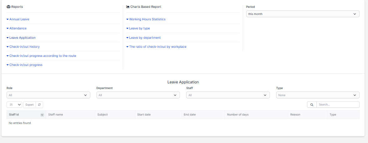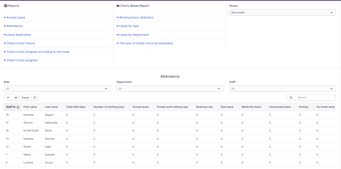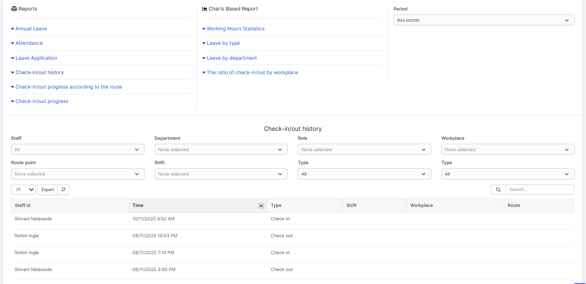 Reporting history check in/check out of employee