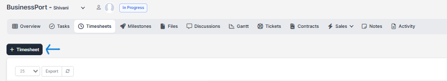To view all project timesheets while viewing the project click on the timesheets tab.