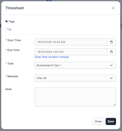- If the user dont have permission for projects EDIT or CREATE only logged in user will be available to select as timesheet staff in the dropdown