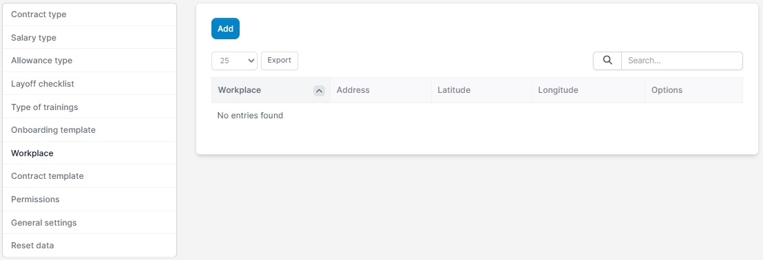 Screen used to create a workplace information for employees. The data at this screen will be used for the HR Records menu